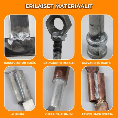 TÀllÀ matalassa lÀmpötilassa toimivalla alumiinipuikolla voit juottaa lÀhes kaikkia vaaleita metalleja, kuten alumiinia, alumiiniseoksia, valualumiinia, alumiini-magnesiumseoksia, ruostumatonta terÀstÀ sekÀ muita metalleja. KÀytön jÀlkeen sauma ei koskaan irtoa tai katkea.