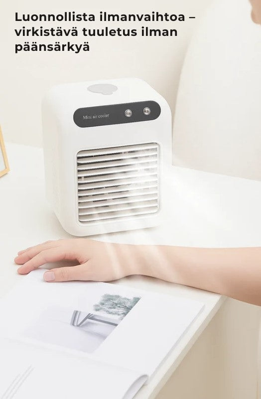 ⚠️ Huom: Tämä laite on tarkoitettu henkilökohtaiseen käyttöön. Se ei viilennä kokonaisia huoneita, vaan ainoastaan käyttäjän lähellä olevaa aluetta.