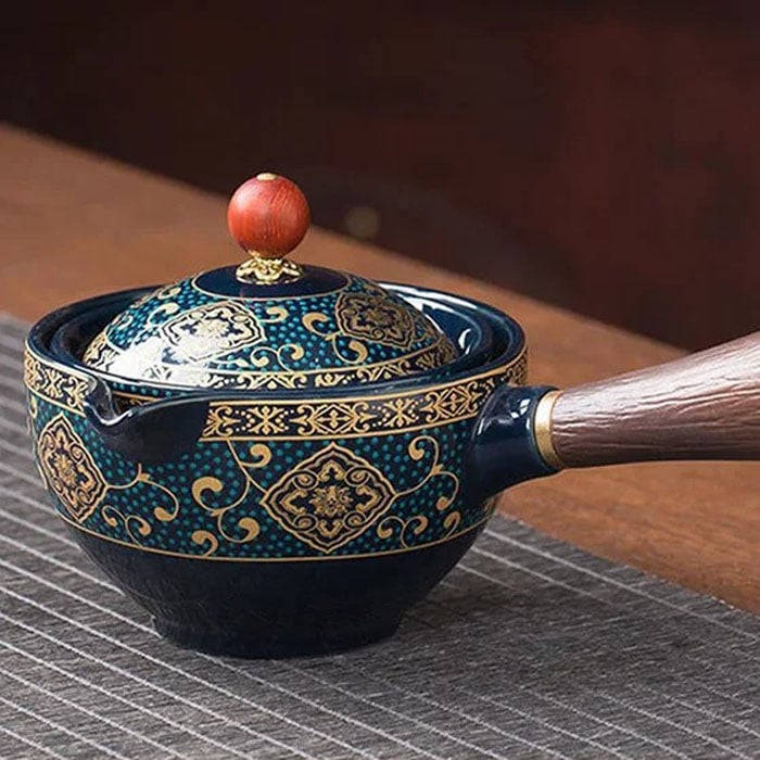 Laadukas materiaali – Teekannu on valmistettu korkealaatuisesta mineraalisavesta ja poltettu korkeassa lämpötilassa. Irrotettava kahva on valmistettu lämmönkestävästä mustasta vuoristopuusta ja tiheähuokoinen suodation on 304-ruostumatonta terästä.