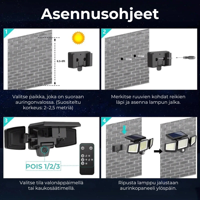 - Tyyppi: Aurinkokäyttöinen liiketunnistinvalaisin ulkokäyttöön