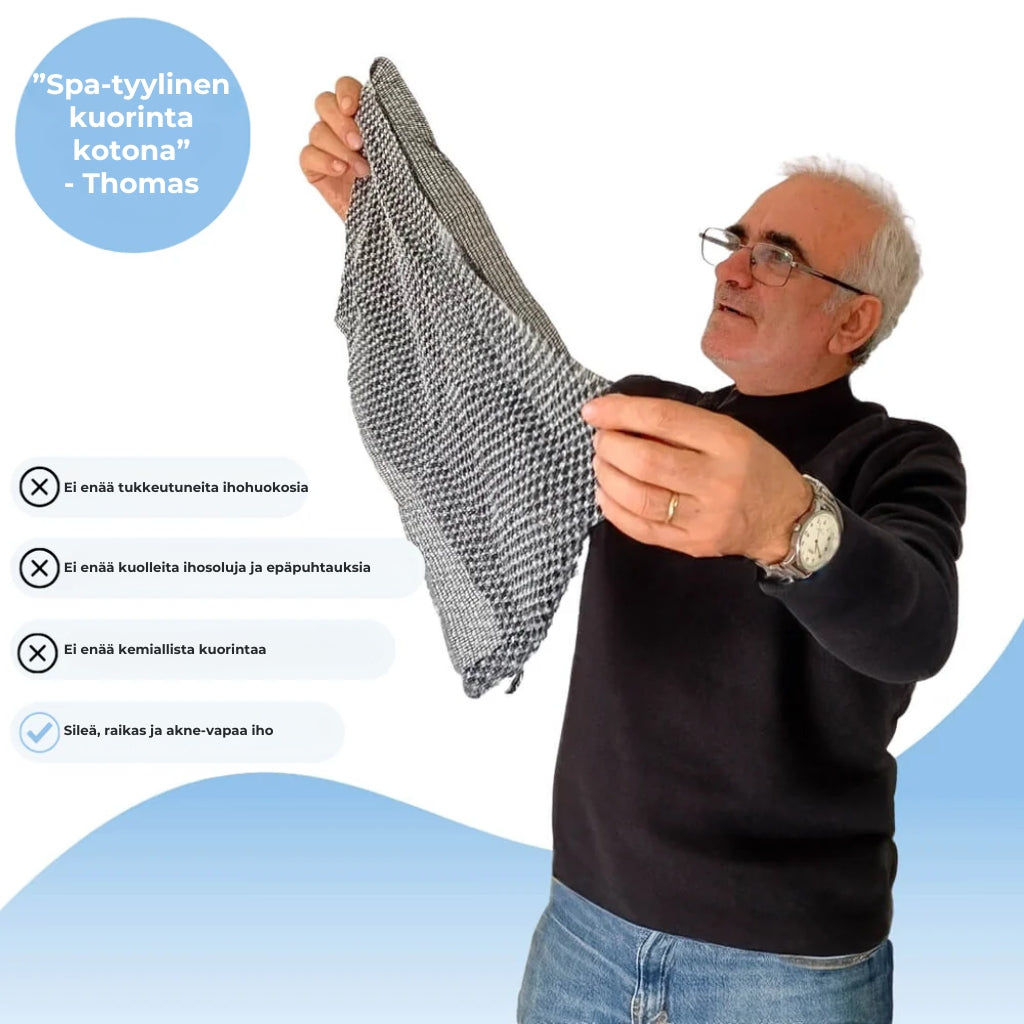 “Olen kärsinyt vuosia kuivista ihoalueista ja sitkeästä selkäaknesta, eikä mikään tuntunut auttavan. Blissy-pyyhkeen käytön jälkeen ihoni tuntuu uskomattoman pehmeältä ja raikkaalta, ja selkäni on vihdoin vapaa finneistä. Tämä on todella mullistava tuote!”