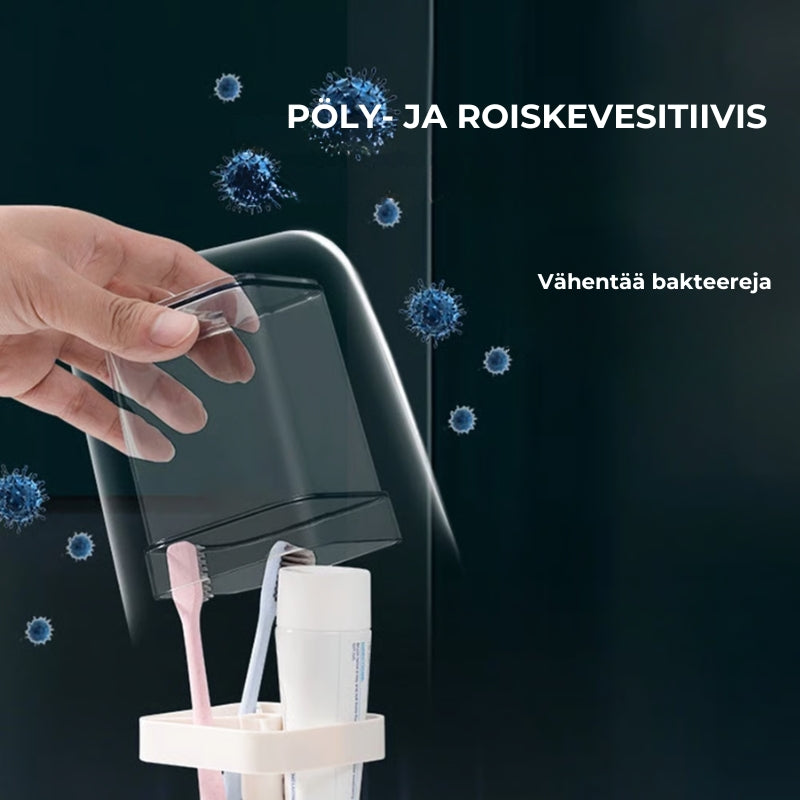 Tämän hygieenisen hammasharjatelineen avulla pidät hammasharjasi puhtaina ja suojassa pölyltä, bakteereilta ja muilta ilmassa olevilta epäpuhtauksilta. Kansi varmistaa, että hammasharjasi pysyvät suojattuina, kun et käytä niitä, mikä parantaa suuhygieniaa ja pitää kylpyhuoneen raikkaana.