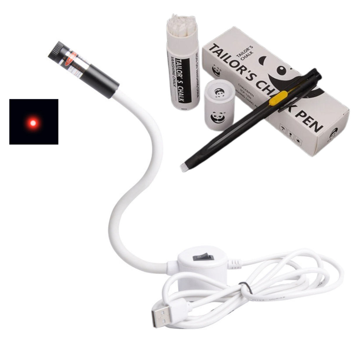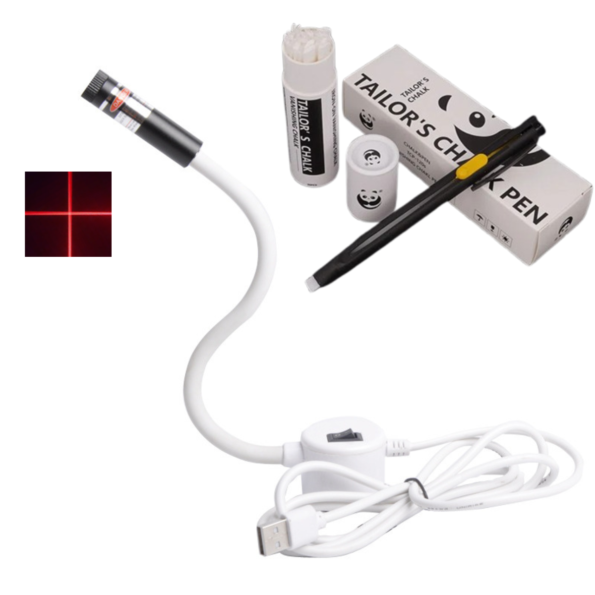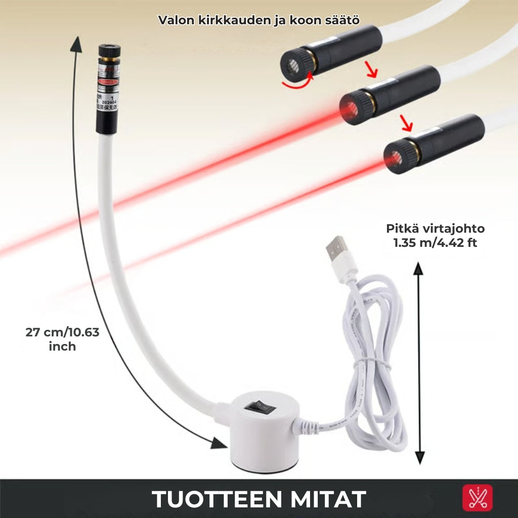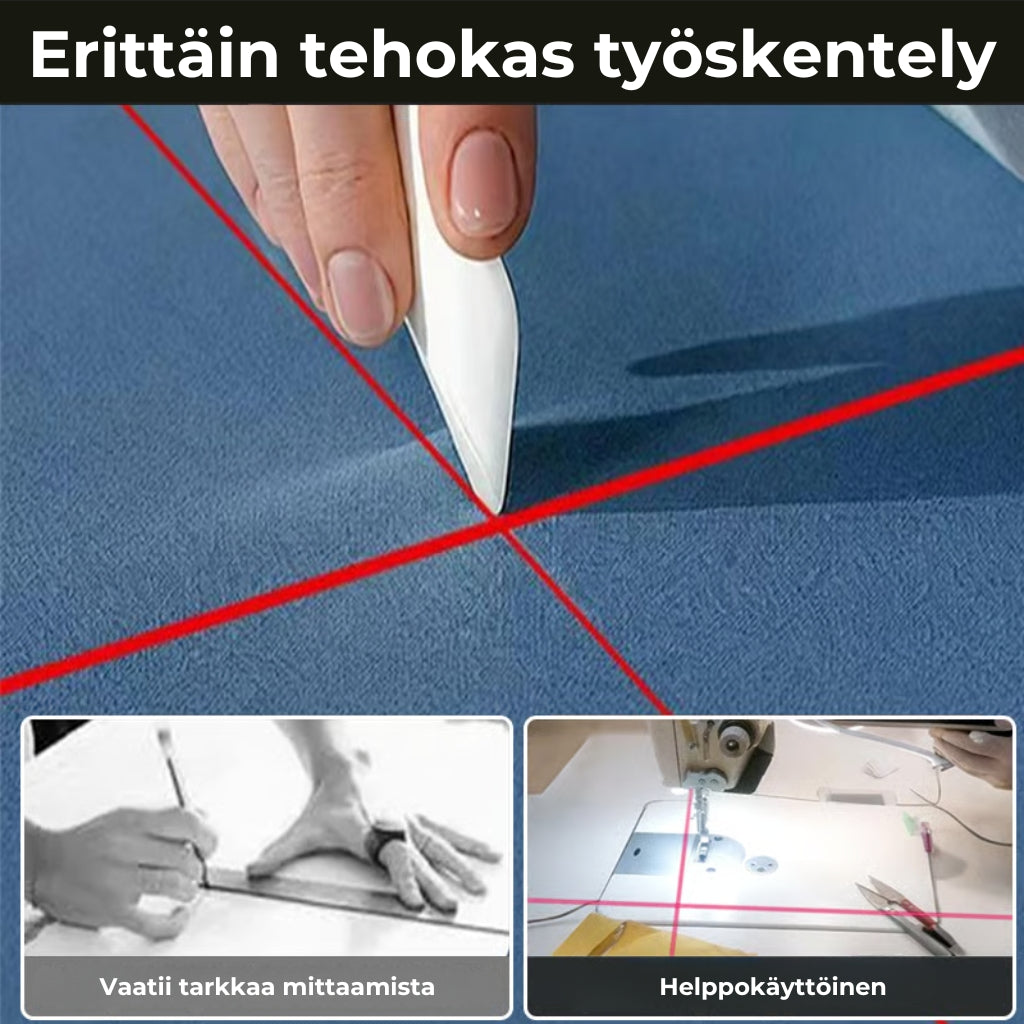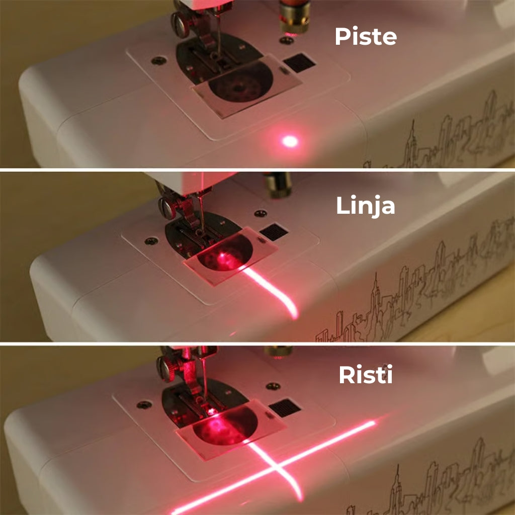Ompele tarkasti ja ilman merkkejä tämän laserohjaimen avulla, joka luo laserpisteen neulan eteen ja osoittaa ompeleen tarkan sijainnin. Ompele suoremmin ja ilman merkintöjä!