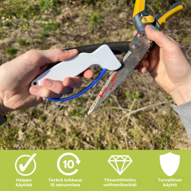 ✓ Sopii sekä puutarhatyökaluille että keittiöveitsille – Teroittaa ruohonleikkurien terät, oksasakset, oksaleikkurit, lapiot, kuokat, viikatteet ja keittiöveitset.