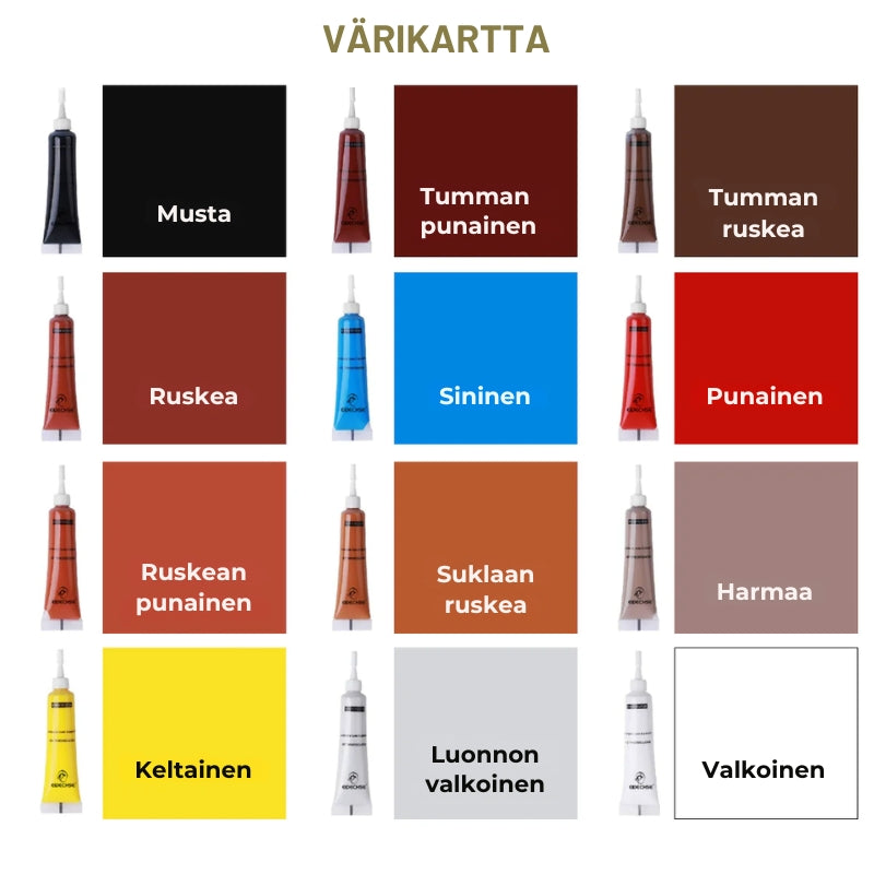 Tämä edistynyt nahan korjausvoide on suunniteltu naarmujen, repeämien, halkeamien ja palovaurioiden korjaamiseen – palauttaen nahkapinnan uuteen loistoonsa!