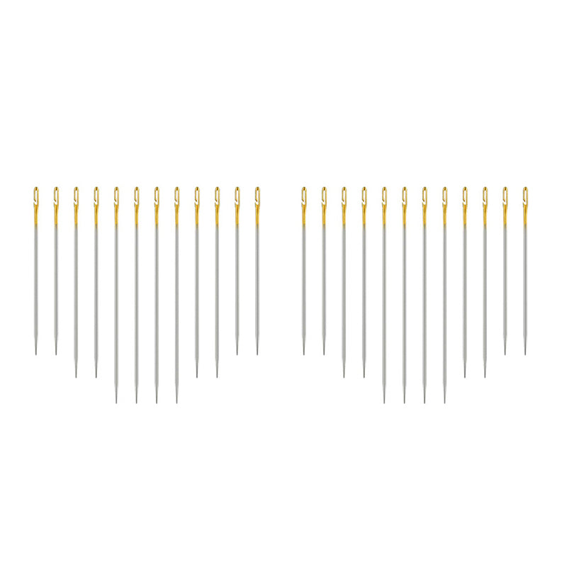 - Setti sisältää 12 teräksistä ja nikkelöityä neulaa, kätevällä jakajalla (koukku yläosassa).