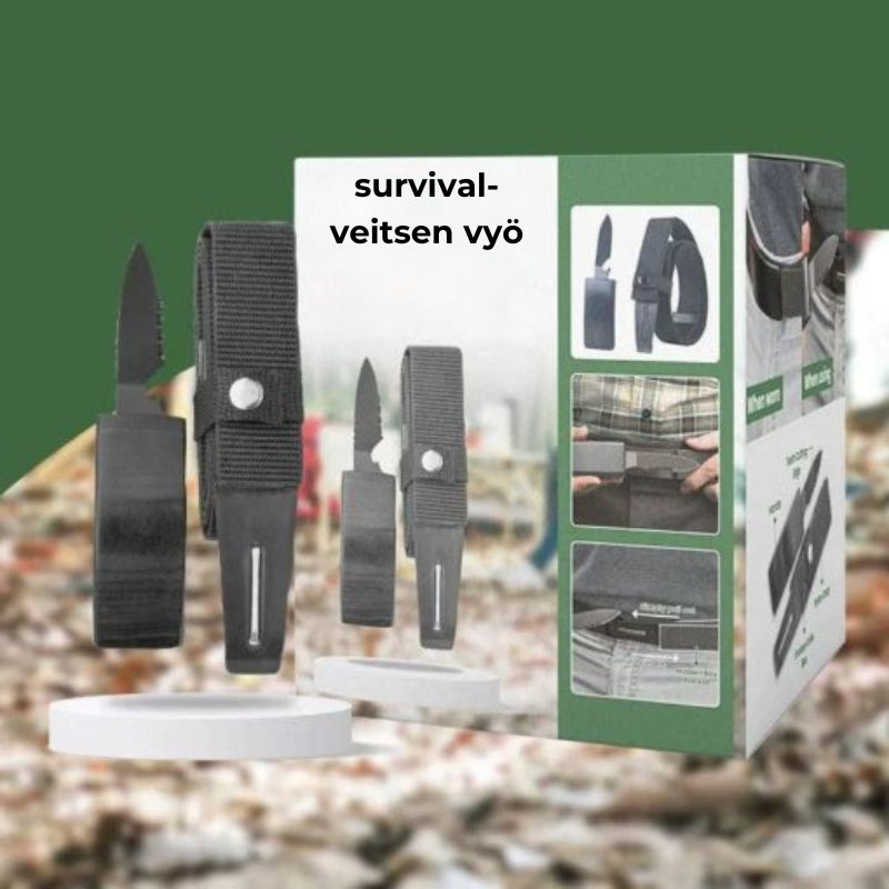 Tässä innovatiivisessa vyössä on piilotettu titaaniterä, LED-taskulamppu, tulentekoväline ja pullonavaaja. Se tarjoaa huomaamattomat mutta helposti saatavilla olevat selviytymistyökalut jokaiseen seikkailuun.