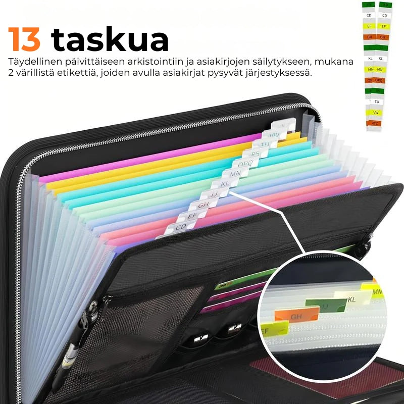 - 🗂️ Seuraavan tason säilytysratkaisu – Tämä ei ole pelkkä kansio, vaan monipuolinen all-in-one-asiakirjakeskus.