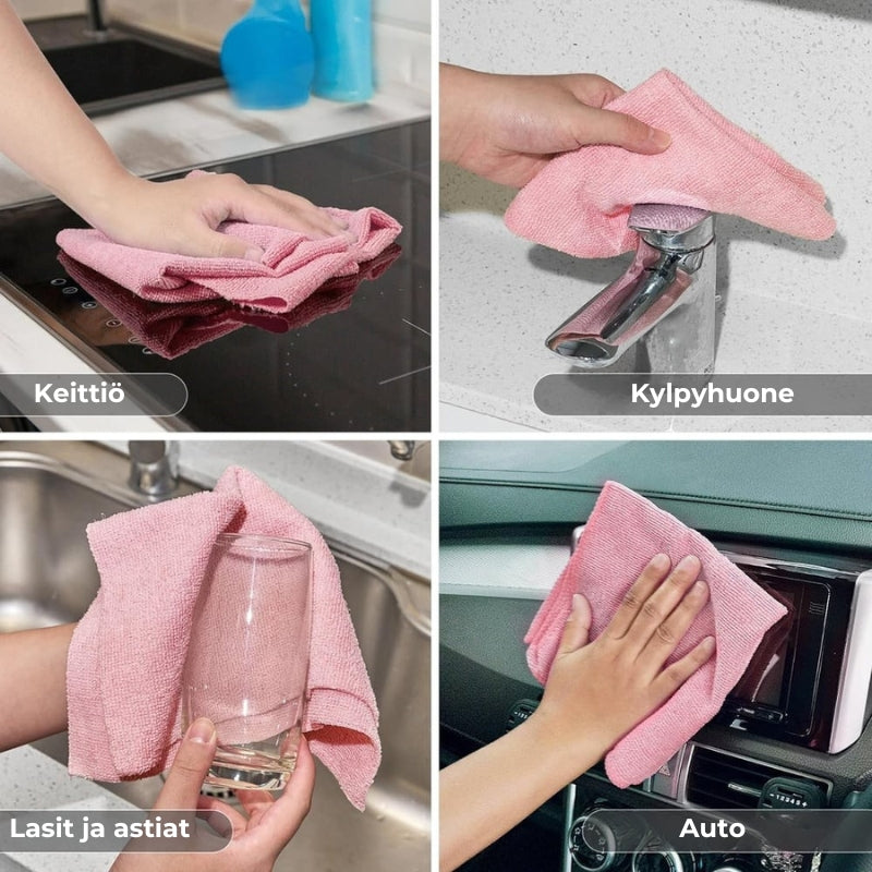 Erittäin imukykyinen ja jälkiä jättämätön: Käytä veden kanssa tai ilman – pyyhe imee välittömästi öljyt, vesipisarat, pölyn ja tahrat herkiltäkin pinnoilta. Ei jätä raitoja tai jälkiä. Sopii erinomaisesti astioiden kuivaamiseen, huonekalujen pölyttämiseen sekä ikkunoiden ja näyttöjen puhdistamiseen.