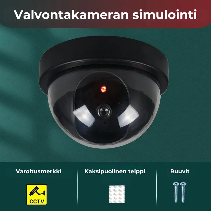 Valekamera on suunniteltu näyttämään aidolta turvakameralta: siinä on säänkestävä kotelo ja vilkkuva LED-valo, joka luo vaikutelman käynnissä olevasta tallennuksesta. Tämä lisää uskottavuutta ja vahvistaa suojausvaikutelmaa.